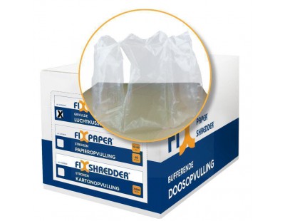 Handy dispenser box with inflated air cushions. For small consumers who only need padding and / or buffer material, this is an ideal solution. In addition to these air cushions , you can also order cardboard shrink or paper filling in a dispenser box. Of course you can also order large packages (500L bags) of filling material on request.