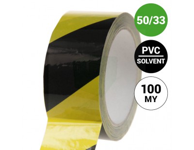 Floor marking tape 100my PVC yellow/black 50mm/33m
